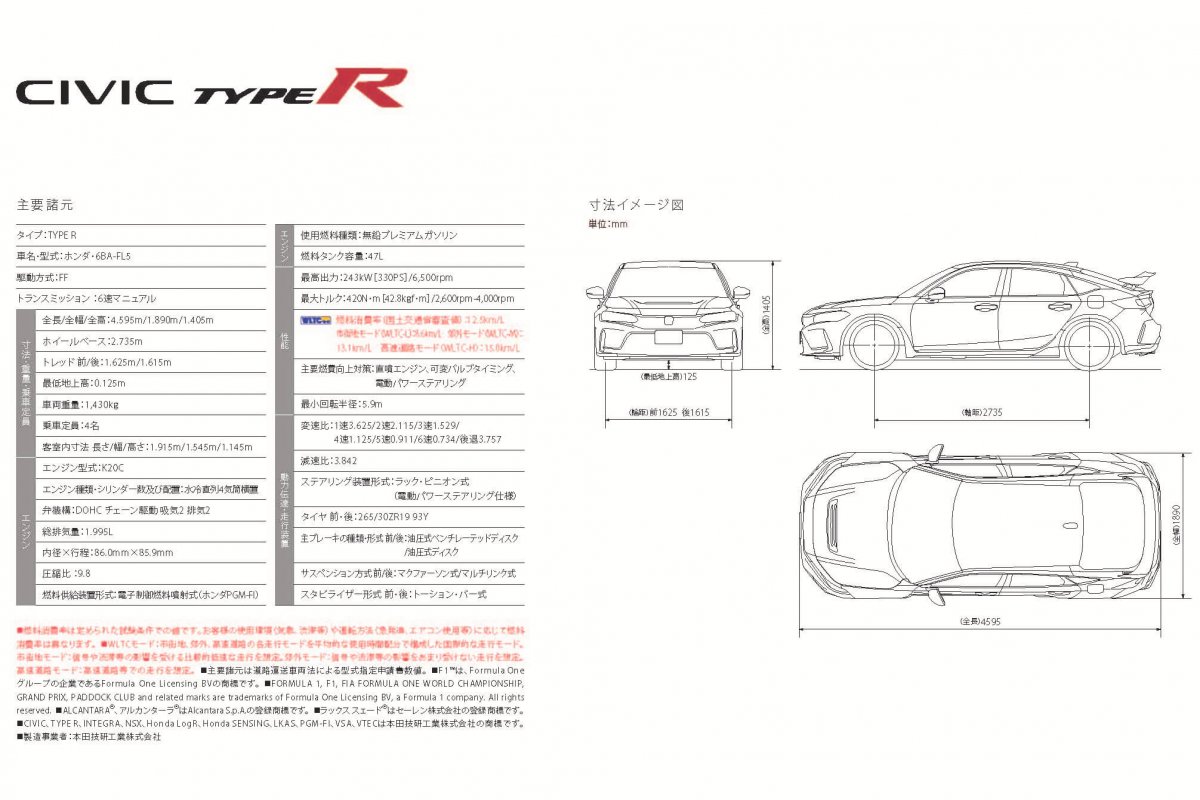 本田日本及北美在今天同步公開了Civic Type R的詳細規格資料,日本當地建議售價為499.73万円,比起上一代的日本建議售價475.2万円,上漲約24万円,這部分相信應該可以作為屆時引進的售價參考。