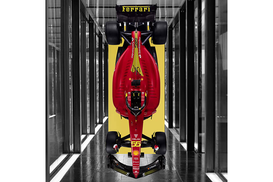 沒錯,2022年代表著法拉利成立75周年——這是個值得登上TopGear雜誌封面的里程碑,恰巧遇上速度殿堂蒙札賽道(Autodromo Nazionale Monza)成立100年。為此,F1-75賽車在紅色基底上加入了黑黃元素以向車廠歷史致敬;注意到尾翼上的Ferrari字樣了嗎?與高懸於位在Maranello總部門口的如出一轍。