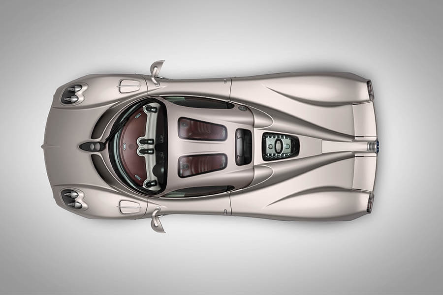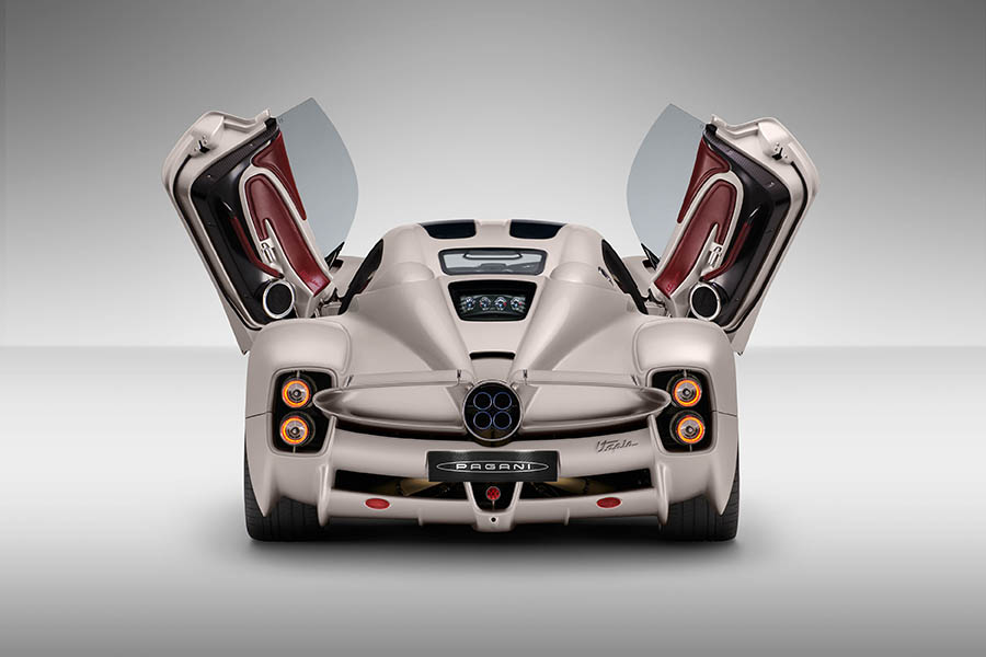 Utopia另外有一點特別的是車門的開啟不再循過往鷗翼開啟的慣例,而是採更多超跑常採用的蝶翼車門,車頂部分則加入了左右兩塊玻璃車頂。車室內鋪陳的部分則將中控螢幕取消、同時相對應的功能被位在時速與轉速表中間更大的儀表螢幕所取代。沿著充滿各式儀表與旋鈕的中控往下看去,Huayra的七速序列式變速箱已為七速手排變速箱的排檔座所取代,同時也可以根據需求選擇Xtrac自排變速系統。