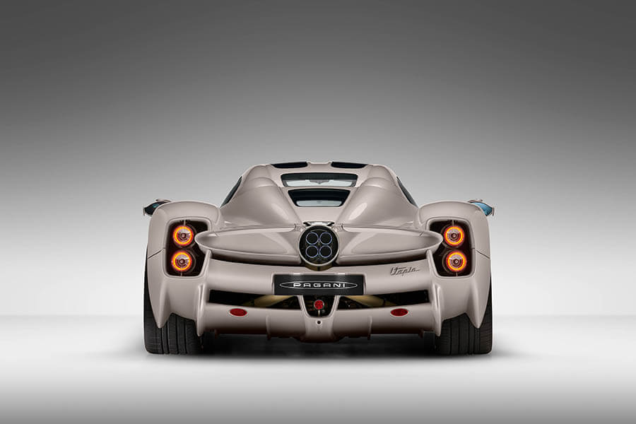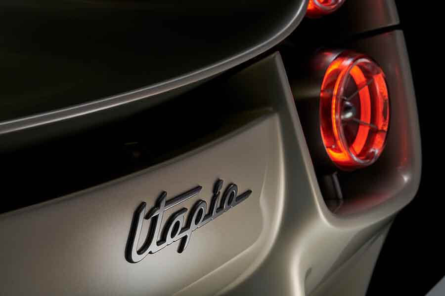 根據Pagani所宣稱”充滿簡約”的設計,Utopia有著與Huayra R造型輪廓略有相似的車頭通風孔設計,上方延續Zonda、Huayra風格的頭燈則加入一層燈罩,或許對空力表現有著一點點的助益;從座艙延續至引擎蓋、車尾的水滴流線型輪廓依舊,不過在引擎兩側的車身表面將引擎進氣口設計為多一層的車身表面層次,不難讓人聯想到前陣子才發布的長尾one-off車型:Huayra Codalunga所採用的設計,只不過Utopia在此修飾得更加圓滑、更加融入車身線條。車尾設計則在鏤空的車尾中放入懸浮式的尾燈組,靈感汲取自噴射渦輪引擎。橫亙左右的大橢圓造型中亦結合了主動式翼片設計,招牌的四尾管則繼續存在於車尾中央。儘管該義大利車廠宣稱其耗費長達六年時間塑造出Utopia的造型,不過依舊能使閣下一眼識出這款最新Pagani跑車。