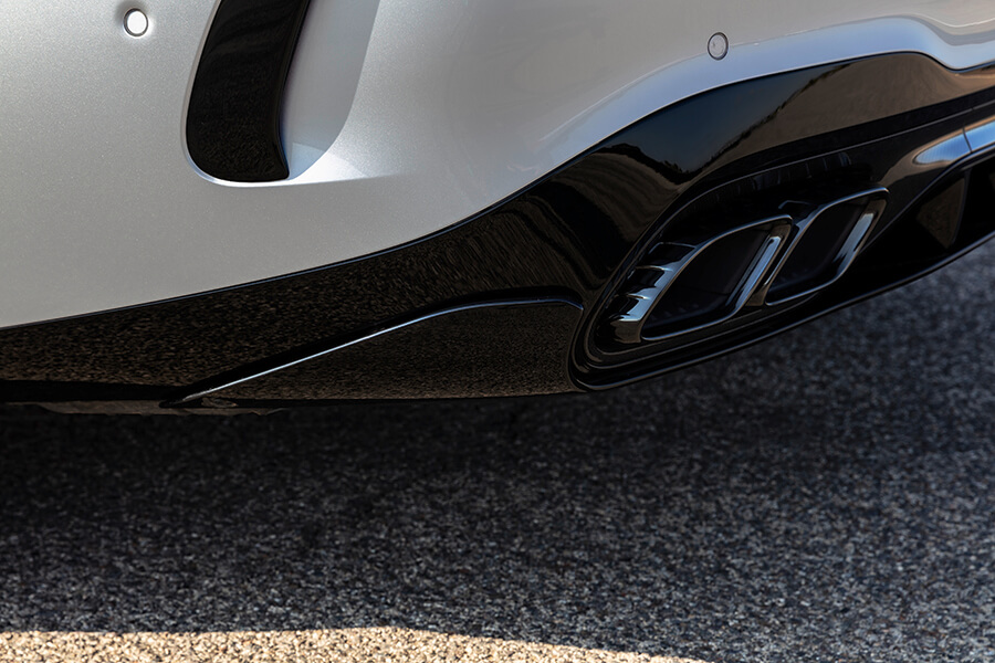 在外型上可以看到微微外擴的前輪拱、AMG Panamericana 前格柵、一些(假)四出尾管以及20吋輪圈,同時可選配碳陶瓷煞車及碳纖維側裙、擾流板。