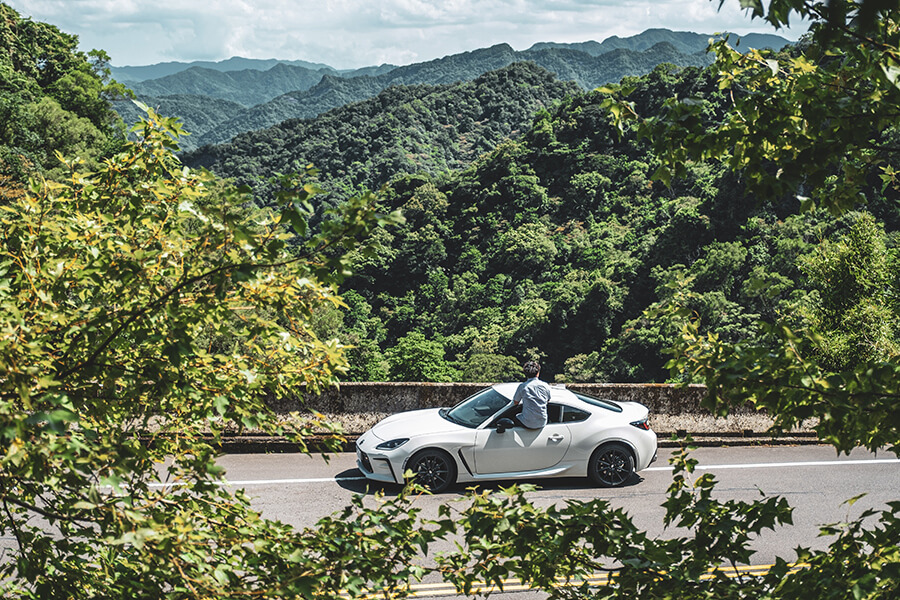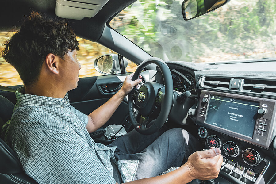 是的,好久沒開手排車了,沿路動不動就想彈個離合器用兩聲咆哮提醒大家這可是手排GR86,顯然2.4升引擎帶來的愉悅感是過去2.0升GT86從未有過的,讓我迫不及待等一下進入山區彎路的感受,據說這次除了動力,下盤也精進不少,從車身剛性、懸吊作動幾何角度、輪距加寬、軸距拉長,還有列為標配的Torsen機械式限滑差速器,腦海裡已經不斷演練入彎順帶拉一下手煞車之後的曼妙舞姿……。