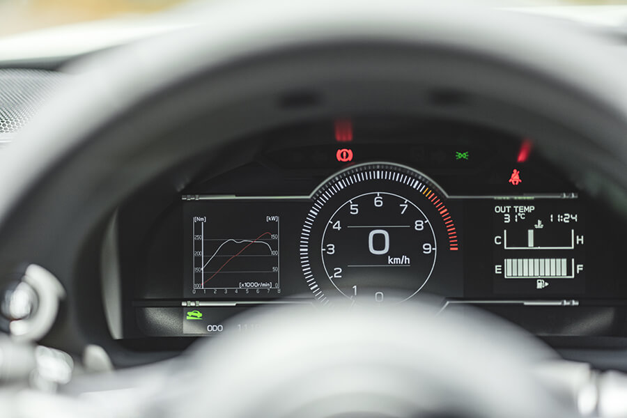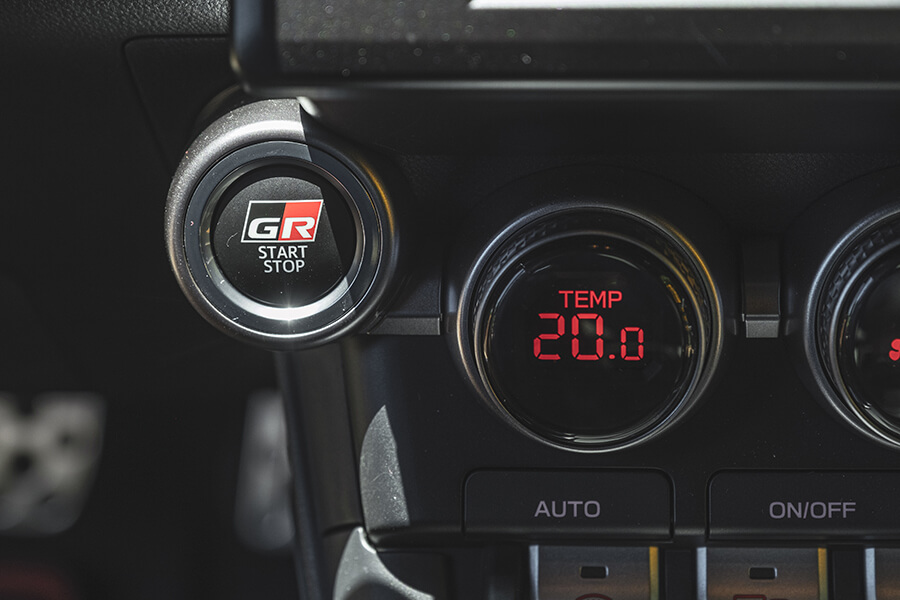 坐進GR86車內很快就能夠上路,新增功能只有儀錶內的左側螢幕提供運動模式G值及賽道計時功能,加上是手排,車內沒有動力模式選項,唯一跟性能有關的按鈕就只有方格旗(Track賽道模式),而且此功能只專注於後輪約束力,跟動力輸出特性無關,比起GR Yaris的三種驅動模式選項及如何選擇最佳設定,GR86更直接了當,只需繫好安全帶,按下引擎啟動鈕就立即進入遊戲時間。