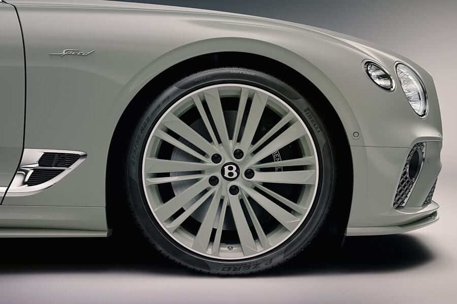 三款以Continental GTC Speed為基礎的特殊車型在車身表面及22吋十輻輪框上皆施以一致的用色,輪框邊緣則有別出心裁的細條紋設計;內裝部分三車除了分別以Imperial Blue、Cumbrian Green以及深紅皮革內飾搭配交織其中的亞麻色皮革,透著微光的門檻上則有以1920-30年代盛行字體呈現”Beverly Hills”字樣,上方則皆有”ONE OF THREE"、"A COLLECTION BY BENTLEY MULLINER"的斗大字樣,註明其珍稀身分。