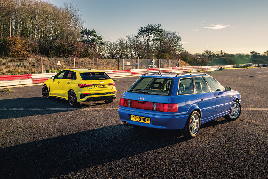 有見識,問得好。我們這次找來的RS3是Sportback版本,雖有400hp火力,在今天的RS系列中其實只是小兒科。另一邊廂的RS2則是奧迪高速大型旅行車的開山祖師,你我可以說欠了它一個大人情。不過新舊兩代都是出自Ingolstadt的渦輪增壓Rennsport快車,兩者都有強大力量和高貴標價。RS3 Launch Edition的英國建議零售價略低於6萬鎊,RS3在1994年推出時索價45,705鎊,後者按歷年通脹率調整後其實超過92,000鎊,豈不咋舌。