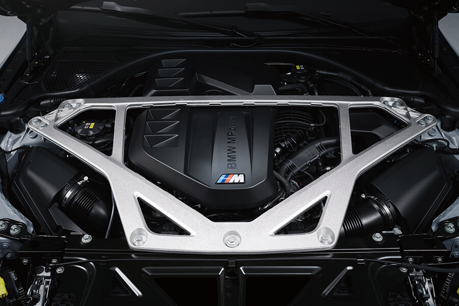 直六引擎本身大致上維持原狀,不過單渦流渦輪增壓器的增壓力已從1.7bar增至2.1bar(兩個增壓器分別負責一至三和四至六號汽缸),引擎管理系統亦經過修訂(須知單單修改引擎管理系統,油門反應已經可以出現巨大變化)。馬力增加了39hp,達到550hp。66.2kgm最大扭力雖然不變,但巔峰狀態可以維持到5,950rpm,比以前延長了450rpm。引擎艙有一個縱橫交錯的新型支架鞏固四周,但支架並非F80那樣的碳纖維製品,而是用鋁合金製造,物料特性顯然有點不對題。變速箱……對呀,依然是自動貨色,沒有雙離合,進一步琢磨之後變招雖然更快更狠,但仍然有點……嗯……。呃,至少動力還是全賴後輪施放嘛。