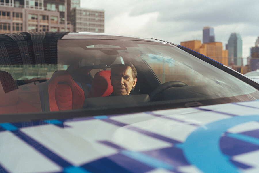 「我知道大家會提及Lichtenstein。Roy是我朋友,我很喜歡他的作品,但這件作品亦從潮流用語、漫畫書和包裝法汲取了靈感。你在裏面會找到一個紅色車頂,以及或紅或藍的真皮裝潢,但同時也有極簡主義色彩,由是創造出一種自我反思的時刻。」