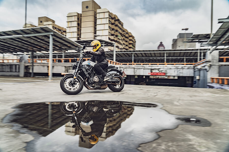 想來一趟浪漫的路騎,必需要先有一部看起來夠有型的車,而也只有騎著這部XSR700在金風颯颯中沿著河岸高架巡行,才能使我停止對壞運氣發牢騷。而此車的確也夠靓,歷經小改款後變得更輕薄、精巧的LED頭燈一甩視覺上沉重的包袱,配合一併LED化的小型前後方向燈使外觀顯得更加純粹。在架構上維持由MT-07延續而來的結構,並在周邊加諸金屬網、號碼牌等元素點綴,排氣頭段側邊的護蓋亦改採打孔金屬樣式,嗅出Yamaha想以此車營造出手工車般的粗獷感受。