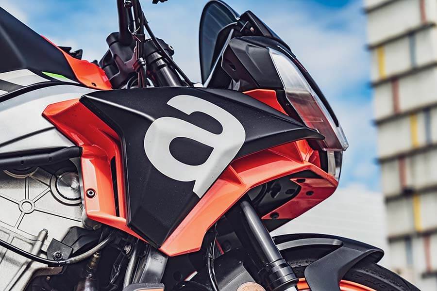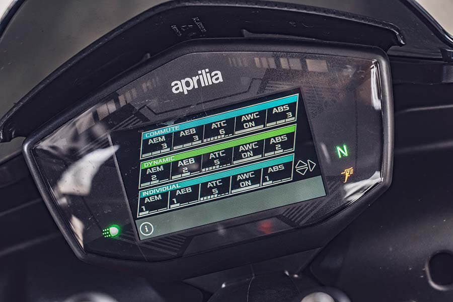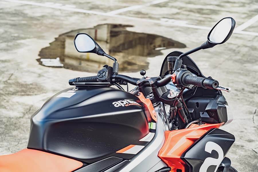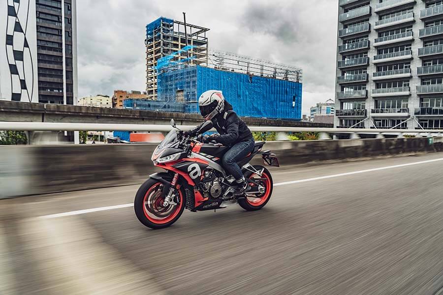筆者過去騎乘RS 660的極其美好,充沛的動力與協調的騎姿相當理想:但所謂協調是就運動騎乘而言,在市區移動時…則是對腰部與脖子的一場折磨。這次Tuono 660在三角台上透過冠座與車把將雙手握持高度大大提升,確實變得更加適合日常騎乘;不過依舊偏平的車把加上座墊表面明顯上揚、讓雙腿不得不確實靠上夾持感十足的油箱,整體形成了身軀前傾、手肘上揚的一派戰鬥街車騎姿。所幸道路模式下的各項輸出都不致過於火爆,在Commute(通勤)模式下甚至可以放心轉動右手而無須擔心油門控制。