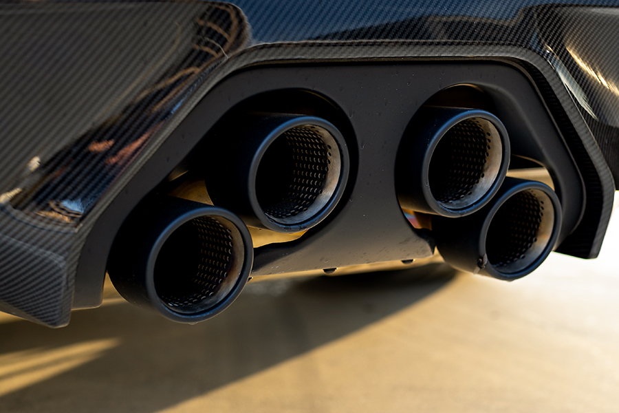 採用各式碳纖維部件,包含鴨尾、後視鏡蓋、進氣口飾件等。擴散器的尾管排列形式又再添加一筆新意。