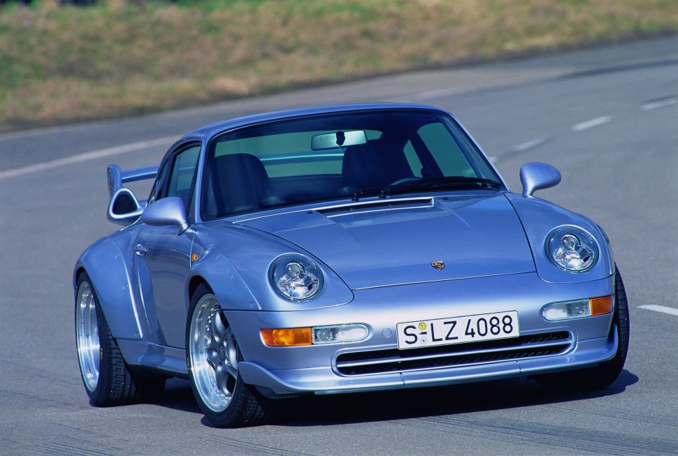 1993年保時捷為參加GT2賽車組別並贏在起跑點,針對GT2組賽例規範首度推出以993為基礎的911 GT2版本,全副武裝戰衣還有四個突出的肌肉狀輪弧及噴射戰機造型大尾翼,讓原本略顯圓潤的身型看起來更加獨特。