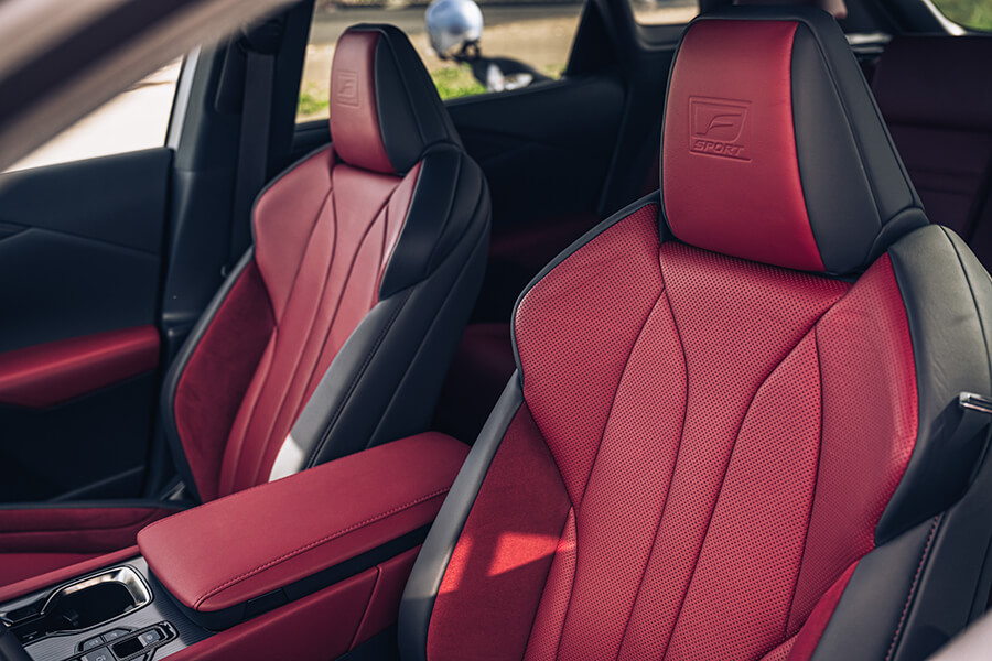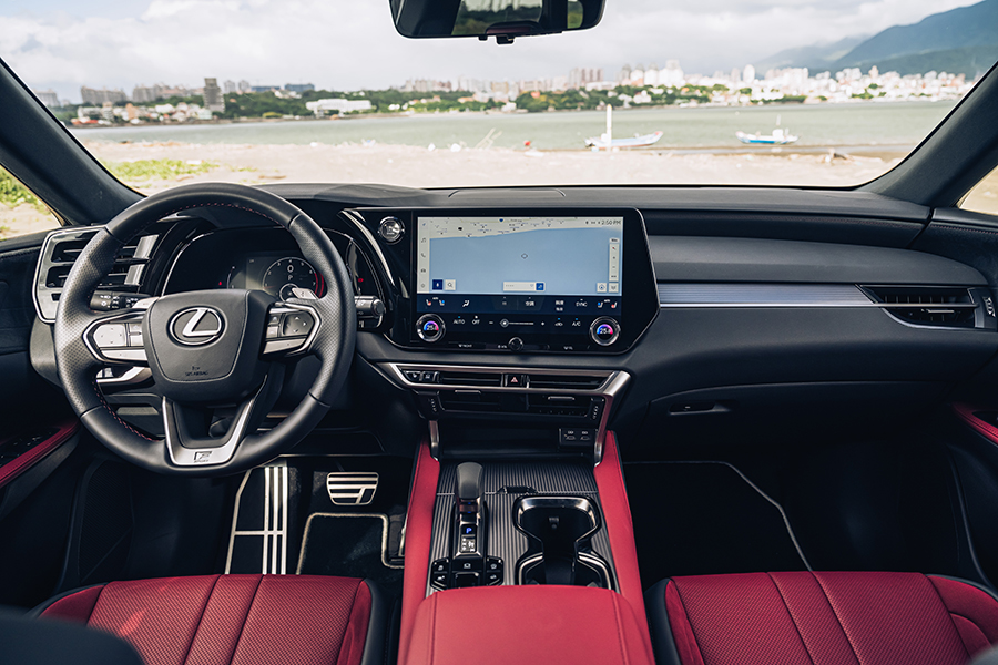 這樣的座位配置,移動中也明顯讓人注意到比以往更為降低的整體車輛重心,反而讓我出現一種置身房車的身體錯覺,而且這種身體回饋感更是神似我記憶中前段時間正式退場的GS房車,前後座的坐姿就是一種恰到好處,不論短途還是久坐都適合,而且還有F Sport的酒紅跑車座椅加持,正好拿捏在艷麗與氣質之間,配上這次RX全數統一五人座的規劃,飽滿寬大的座椅,同樣很讓人信賴。而且在有所經驗後,從NX啟用的電磁車門開關自然更是順手,左手一放一壓,輕輕彈開後讓人還可以好好地注意好後方淨空再行推開車門,而且這次還同步附上SEA離座輔助系統,會提供警示或直接限制開門動作,確保車上或路上的三寶都安全無虞。