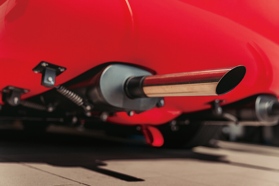不過這些都是第二階段的計劃,此時此刻可是有一部目前世上絕無僅有的手工製作六零年代義大利賽車夠我忙個不亦樂乎。何況在彷彿一直伸延至縣界的長長引擎蓋下面,正有一副5.3公升雪佛蘭V8發出足以令地殻板塊移位的隆然巨響。這副引擎裝有四個Weber化油器,用一個按鈕就可以點火發動。高轉速V12確是難以媲美的事物,尤其是當你用一副注入了純義大利奇思妙想的玲瓏車身把它包裝起來。但雪佛蘭V8無疑十分接近那種境界,怠轉之撩人勝似搔撓項背,5,000rpm則叫人熱血沸騰。