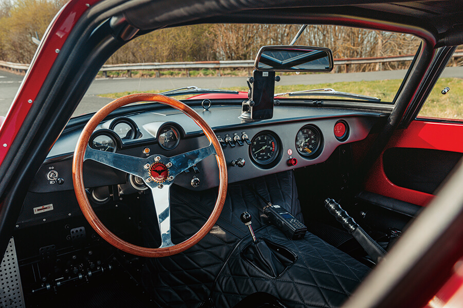 這部新車造得如此動人,RML實在值得我輩一拜。雖說設計忠於1965年原著,它的外殻其實用碳纖維製造,而不是像前輩那樣用玻璃纖維覆蓋鋼框車架。油缸跟以前一樣藏在門檻內和車手背後,但3D掃描大大有助工程師在車架其他地方騰出無損結構堅固度的空間。此外,他們在車廂內還安裝了一個符合FIA賽例附錄K的防滾保護架。