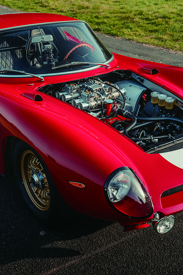 打開鎖扣掀起引擎艙蓋,一眼便看得出Bizzarrini果然深諳此道——V8落在引擎艙大後方,前面留下的空間幾乎夠你多放一副引擎。RML曾經用現代測量技術量度此車的重量分佈,結果發現四個車輪各自分攤的重量,不多不少剛好就是總重量的四分之一。5300 GT Corsa還動用了四輪全獨立懸吊和碟煞,這些都是當年只有少數對手擁有的先進技術,這部車卻把它們集於一身。
