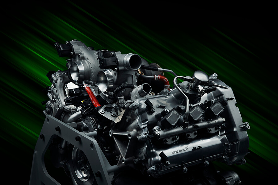 動力系統為麥拉倫自行開發的全新120度夾角V6引擎,採用Hot V結構,也就是將兩具渦輪增壓器放在V型夾角的汽缸內側,此設計可縮短渦輪的反應時間在近年廣為高性能引擎所採用,但也因為熱氣更加集中在增壓器範圍區間,廠方必須用一塊隔熱罩阻擋渦輪增壓的熱氣,並加上一個專屬通道以利於將高達攝氏900度的熱氣導出車尾,因此只要引擎發動著或車輛剛駛回Pit都可以見到車尾上方的滾滾熱浪。電動馬達同樣為自家製品,重量僅15.4kg並由車身下方的7.4kWh鋰電池供電,純電模式的最長續航距離為31公里,最高車速130km/h。