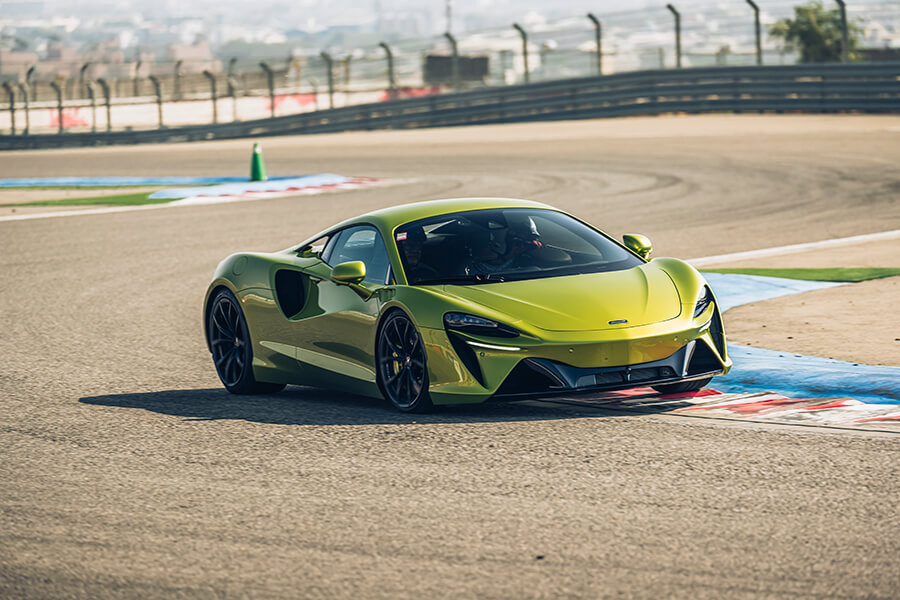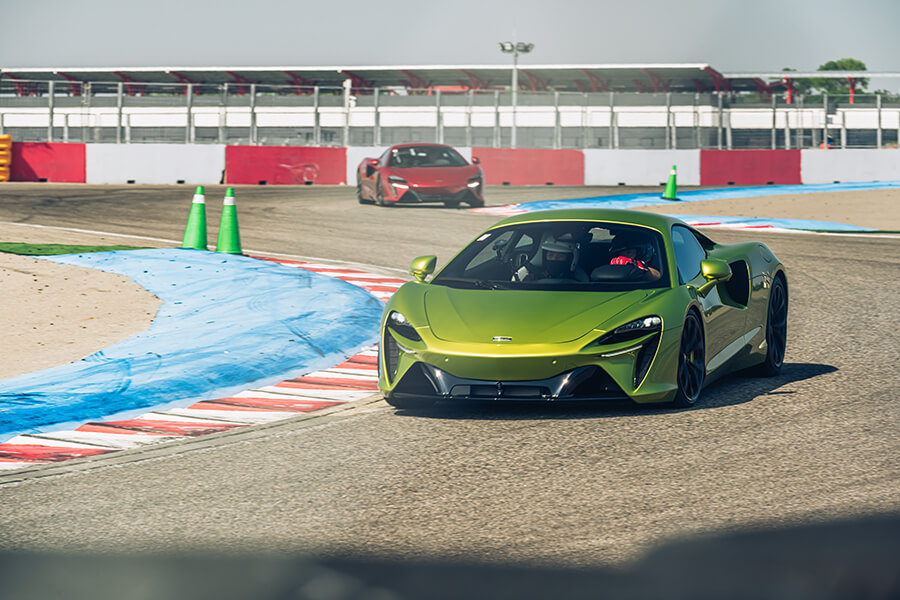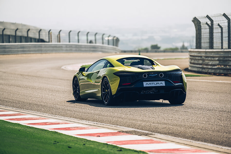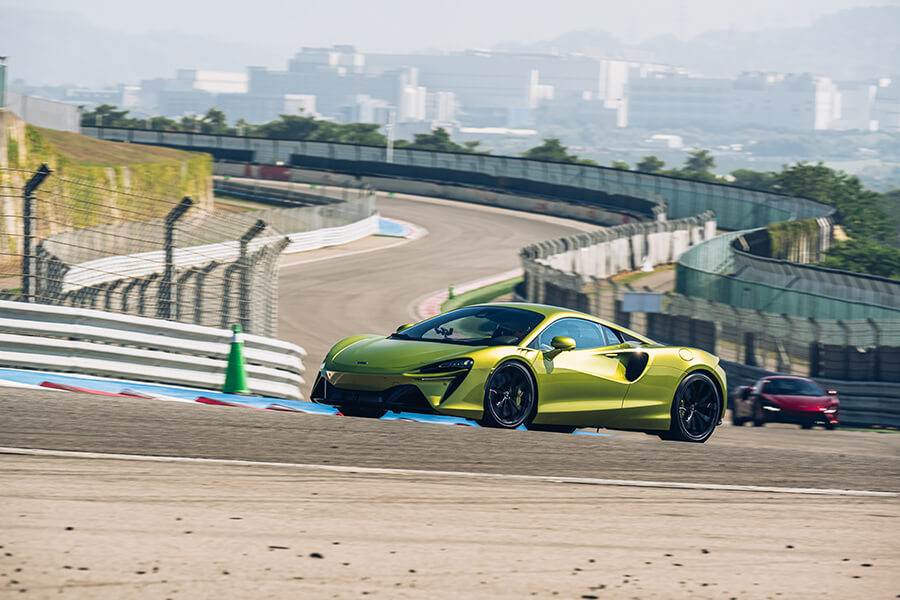 上午階段的重點在於暖身並先熟悉車況,感受從Comfort、Sport到Track模式的特性展現。首先Artura第一個吸引我的是重心極低,Clubsport桶椅除了合身且毫無壓迫感之外,稍微後躺的角度更是舒服,結合極細膩又精準的方向盤手感,雙手及身體接收到的回饋訊息量更多了,這些都迫使腦袋的運轉速度跟著加快,甚至有更多餘裕檢視前一動的開車手法,即便這時速度已經加快,但我卻沒有因此感到緊張或亢奮,感覺很怪,就像是少了個東西,什麼東西?我思索一下,是聲音!對,引擎咆嘯的聲音!