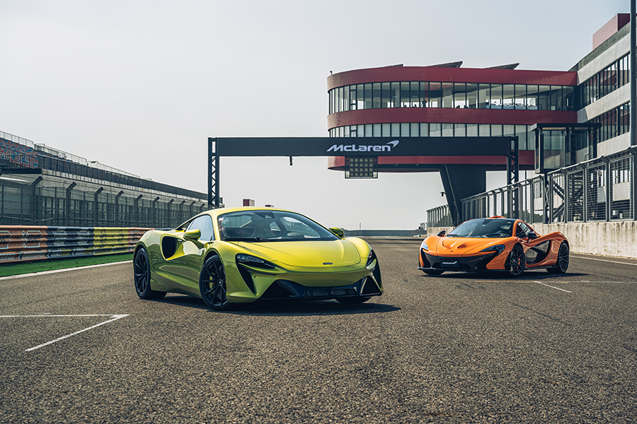 是的,前陣子在麗寶首次試駕了法拉利296 GTB,當時對有著Piccolo V12稱號的V6油電複合動力留下相當深的印象,至於Artura能否跨越這道門檻?是的,過去兩年多的疫情期間麥拉倫確實不好過,停工衍生的財務困境影響了許多事,當然也包括Artura推出時程的延宕,但這些紛紛擾擾如今總算撥雲見日,兩部栩栩動人的Artura就在那兒,再加上同樣搭載油電複合動力的P1與Speedtail親臨站台助陣,說明Artura的油電技術其來有自而非橫空出世。
