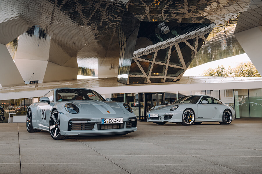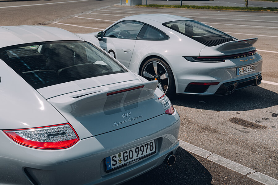 陳列室外可見停泊著一部最容易一眼看出是Porsche Exclusive出品的997 Sport Classic,一款某人幾杯下肚大啖熱辣辣香腸後構思出來的灰色異種911。事緣效力保時捷的Boris Apenbrink和Grant Larson在2005年某次燒烤大會上決定向上層建議,重新推出Porsche Exclusive十八年前完成Leichtbau 964 Turbo S之後便偃旗息鼓的期間限定型號。市場推廣部老總覺得這是個好主意,於是一待宿醉消退抹掉吃肉太多而流出的汗水,這對朋友便馬上返回斯圖加特實踐計劃。