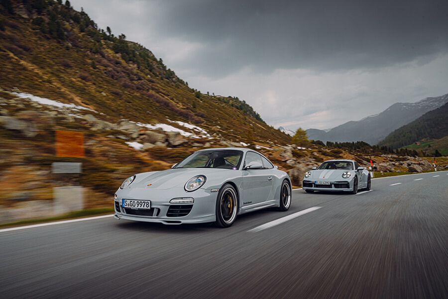 作為廠方以外有幸率先駕駛新型992 Sport Classic的人之一,Mark Riccioni和我受命把這部車送往Fuori Concorso公開亮相,屆時Exclusive Manufaktur最精彩的稀世奇珍亦會出席這個在科莫湖畔舉辦的慶祝活動。哎,在下何嘗不知道這是一個艱難任務。不過隔壁既然碰巧有一部舊版997 Sport Classic,帶它一同上路亦未嘗不是個好主意。反正可以借,不借白不借嘛。