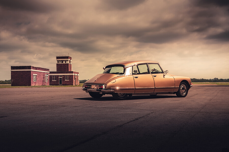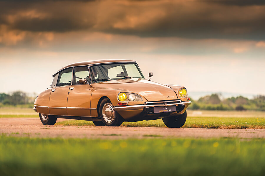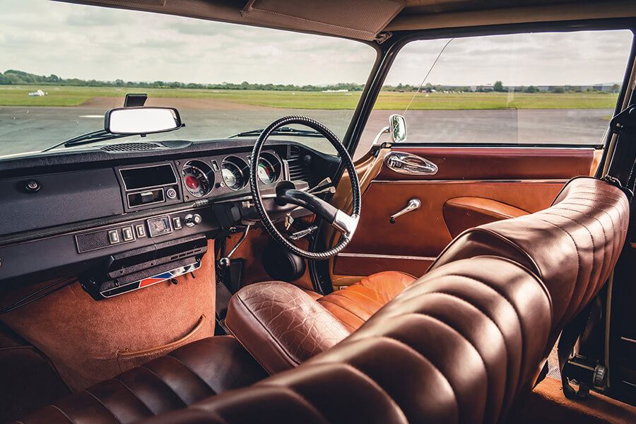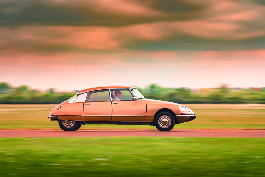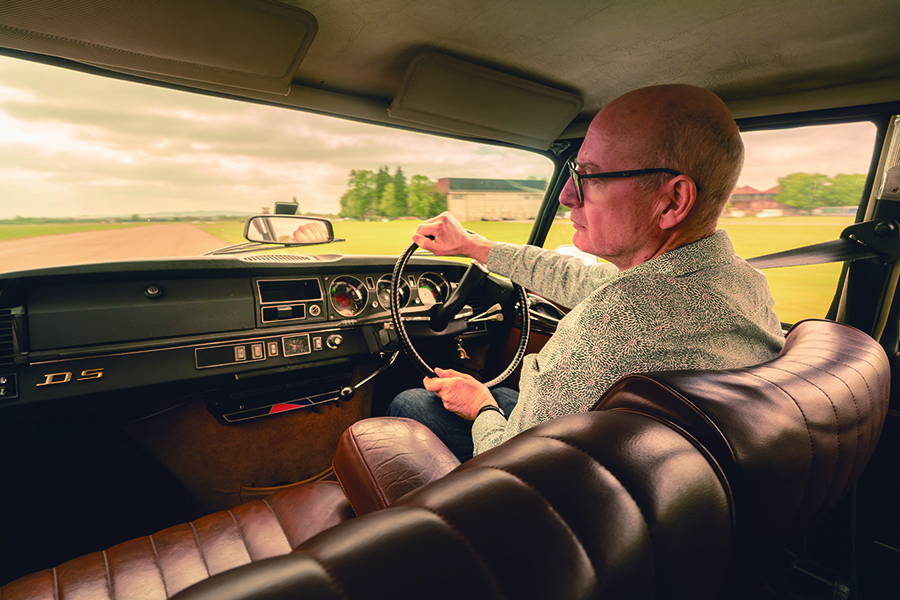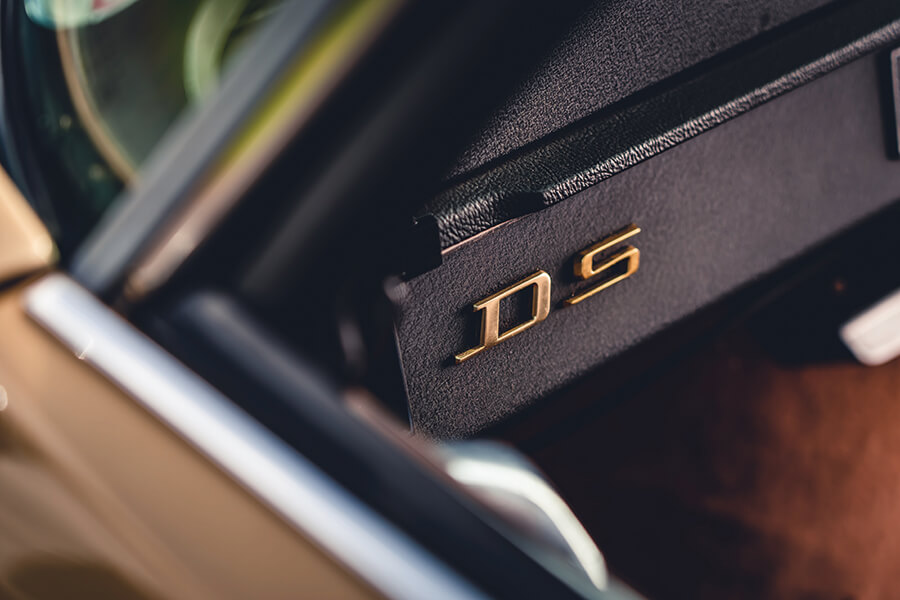 這部1972年出廠的DS以棕色為基調,用色十分符合出廠年份,車頂用上Ambre Solaire古銅色,地毯奶茶色,座椅巧克力色……呃,與其說是座椅,不如說是厚厚軟墊撫慰你全身的扶手椅。此外當然少不了一對黃色頭燈,單輻式方向盤彷彿用1970年代Gitane單車的握柄防滑膠帶悉心捲纏起來。駕駛視野跡近無遮無擋,車廂空間之充裕足以讓你痛快拐彎時猶能覺得舒適寫意。