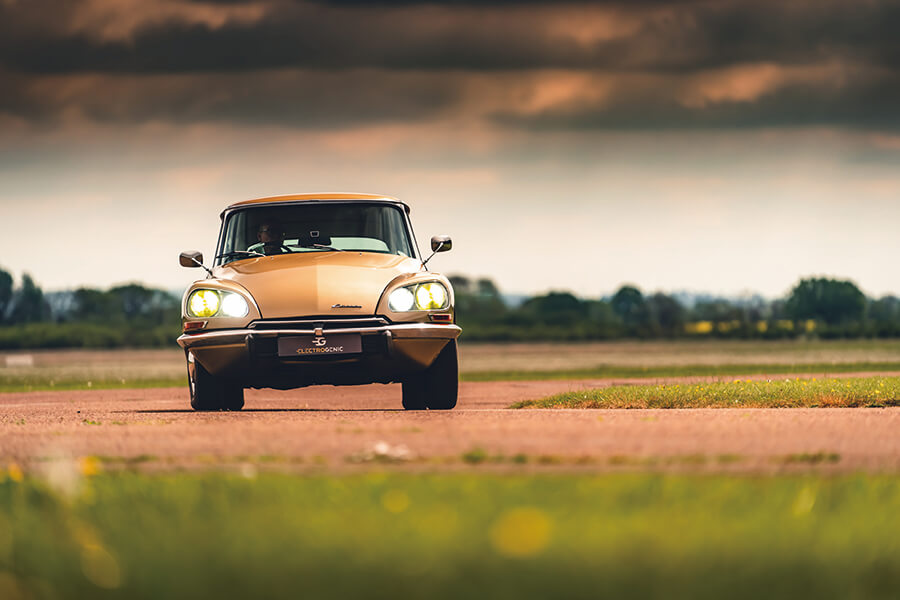 所以像牛津郡改裝商Electrogenic這樣用電動系統代替DS的平庸引擎,實在大有道理。閣下或許覺得其他復古改裝作品有褻瀆之嫌(譬如拆走捷豹XK的美妙引擎,或者保時捷的水平對臥六汽缸),但我們敢說你一定支持用移植手術把車輛創造者本人根本不想用的引擎乾脆打掉。生怕電氣驅動系統會沖淡經典名車百味雜陳的駕駛滋味嗎?須知這些使用化油器的老爺引擎很容易咳嗽咳到氣急敗壞,舊式變速箱的同步嚙合機關又流於脆弱,想運用自如的話得花上好些技巧。如果改造成一個檔位走天涯的電動車,難道不會變得單調乏味嗎?