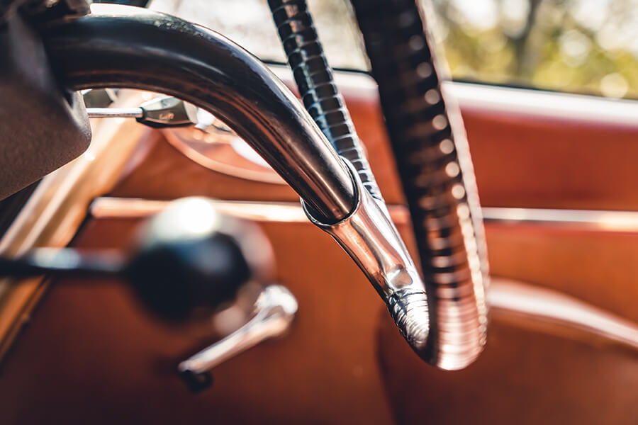 跟所有20世紀中葉的雪鐵龍出品一樣,這部DS也有一枝反傳統排檔,一枝從轉向柱伸出來的巨大法杖。這枝棍用起來其實不是那麼嚇人,哐啷一聲就可以在檔槽之間徐徐上落。這部車相當滑䅲的一筆是保留了原有的阻風門拉掣,拉出之後開動馬達即可倒車。喔,這邊其實還有一個比之更古怪的設計——儘管換檔要用到離合器,起步或停車原來毋須操縱離合器踏板,因為電動馬達的「怠轉速度」本來就是零,記得嗎?