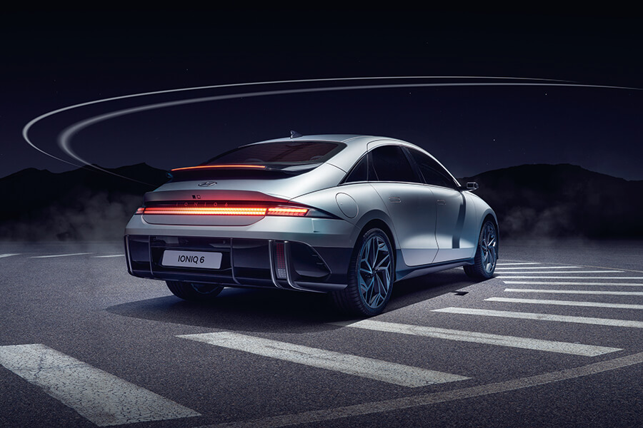 Ioniq 6輪軸距長2.95m,僅以47mm落後於新型Range Rover,車身全長4.855m。據 Loasby憶述,他們說服了習慣謹守程序的現代工程師在美學原因之下大可偏離試算表上的數值。「我們努力爭取把輪軸距延長50mm,因為必須把後輪拱往後推以獲取所需比例感。游說過程並不容易,因為這些改動有違原設計,但大伙兒總算爭取成功,整部車亦因此顯得更順眼。」