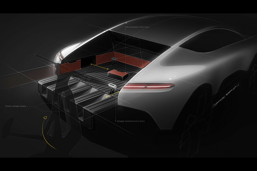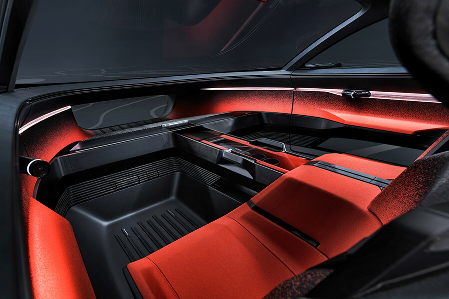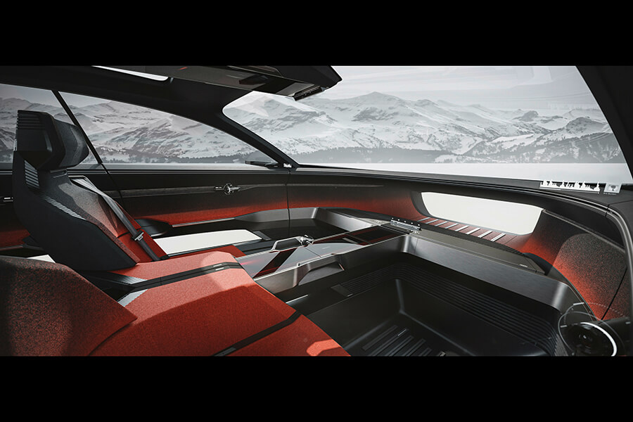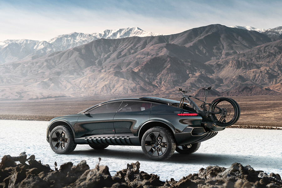這部天生註定多才多藝的跨界概念車,誕生於坐落於加州馬里布的Audi設計工作室,距離聲名大噪的沿海公路只有咫尺之遠。這也許說明了此部Sphere系列的壓軸之作在驅動形式、懸吊設計得以在on/off road環境間穿梭自如,同時還有相當靈活的裝載機能,前一秒眼前還是部優雅的4-door coupe、一個轉眼卻能成為後方放上兩部e-bike的戶外皮卡;不僅如此,具有自動駕駛功能的Activesphere還可以在自動駕駛時將軛型方向盤與踏板收折,同時前方透明的”格柵”也提供更加通透的車內視野、同時中央通道的透明蓋還可以為飲食進行加熱或冷卻。