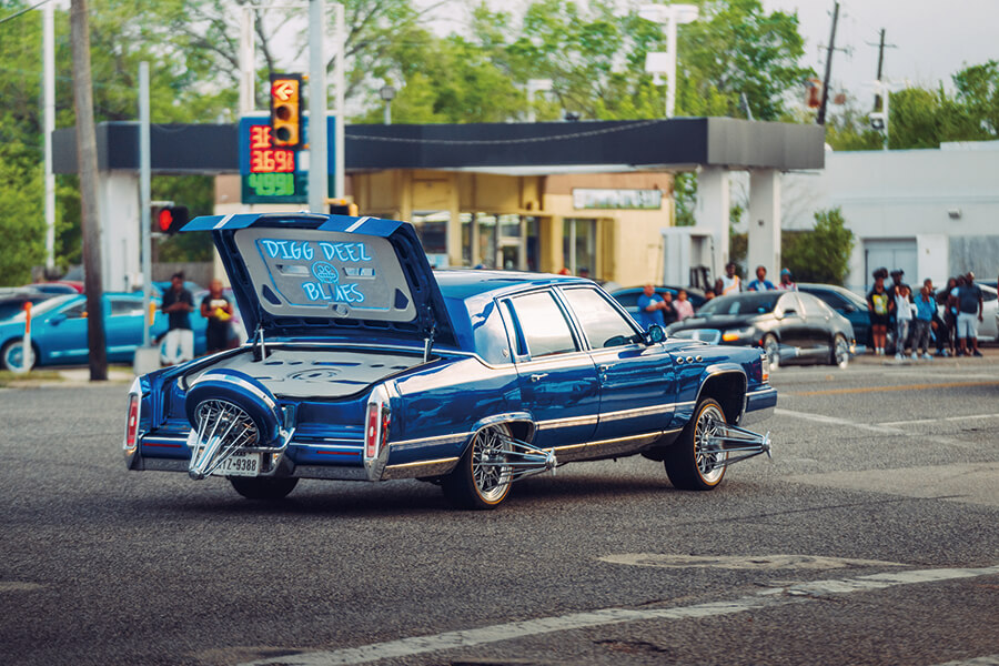 只不過短短幾分鐘之內,阿Lynn便聯絡上說唱歌手 Rick Ross、Lil Keke、綽號JC的OG slab車手Jonathan Coleman和Corey Blount,讓我們當場隔著電話打招呼。他趁著手機未有因為FaceTiming而變得燙手期間為我們介紹了slabs的歷史。「大家今天都以為slab代表『Slow, loud and bangin’』,其實並非事實。Slab其實意指鋪砌街道所用的混凝土板,因為我們經常車底撞板。」
