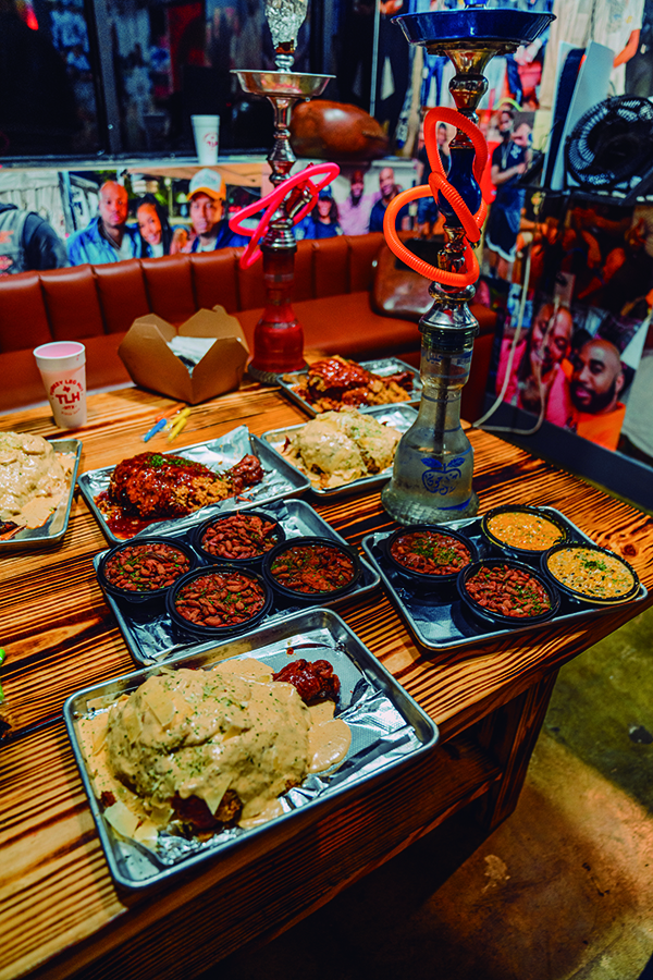 這天晚上阿Le$和幾位朋友帶了我們去Turkey Leg Hut見識南方人的待客之道,吃了一頓塞爆五臟廟的大餐。TLH以尺寸大似幼兒的Hennessey Alfredo大蝦釀火雞腿著稱(Hennessey意指rapper喜歡的干邑,並非那位製作蓋世快車的仁兄),在slab圈中和美國南部大有江湖地位。店主之一Lynn Price也是車痴一個,而且很可能是這個城市中人面最廣的人,原因卻不限於他在招呼我們的貴賓室貼滿了自己與籃球、說唱和流行文化界名人的合照。