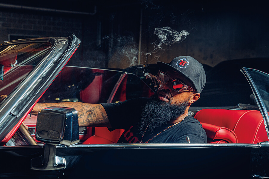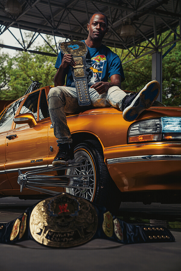 來到休斯頓南部中心地帶Sunnyside的 Q Kutz Barber Shop,我盛情難卻披上銅色罩袍登上理髮椅。考慮到割喉剃刀就在伸手可及之處,Big Rick居然能夠紓緩我胸中焦慮,實在好不神奇(在圈中打滾了廿三年的他可不是為了自我諷刺才起了這樣一個綽號)。「如果得到一部乾淨整潔的slab,你會非常風騷,風騷到極,換作是我也會這樣。我是色盲,根本不在乎你部車噴上甚麼顏色,不過乾淨整潔的slab一看就知道乾淨整潔,這已值得我尊重。」