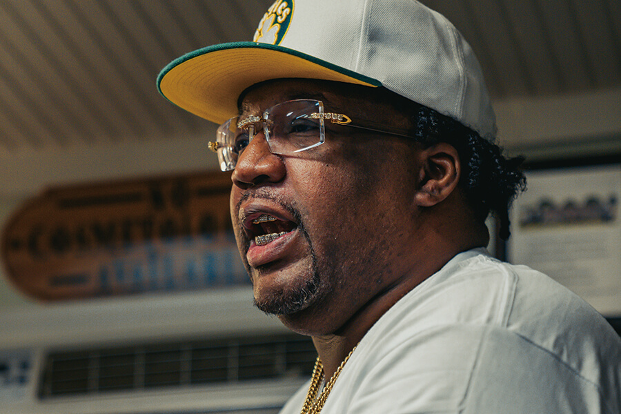這間一層樓高的小小理髮店,店內氣氛十分友善,經常瀰漫著高級大麻香味和笑聲,笑聲更響似門外為數眾多的糖果紅色slab從尾廂傳來的重低音。而且這班人並不嚇人,反而明顯流露出一種十分高興見到我們遠渡而來實地觀摩的真誠。「這是我們的文化,我們十分樂意和所有人分享。」戴上鑲鑽眼鏡的Melbox說道。