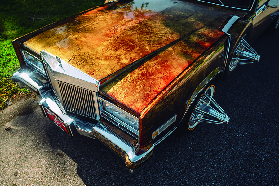 「我老豆係最初做candy(糖果色車漆)的人。」Lil Ike的兒子Amos Caballero說道。Candy車漆現已成為slab界的指定動作,也是脫穎而出的不二法門,而且用處比你所想還要多。首先,這種彩虹色加工手法(通常是噴上加了顏料的透明漆,但有時也會用金屬或珍珠漆染色),會令車身表面顯得異常剔透,大大有助你鶴立雞群。其次,slab的車身顏色原來具有地域性含意,作用好比一個充滿活力會行會走的郵政編碼。舉例說,來自休城南邊的slab友都喜歡用糖果紅色,城北喜歡用糖果藍,盤踞馬丁路德大道的slab友會用糖果綠,Yellowstone和Hiram Clarke兩個街區分別使用糖果黃和糖果橙,出身城東的J Hawk則愛用金色。