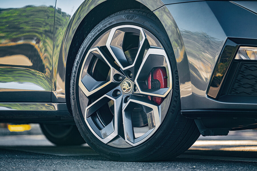 當然啦,換上EA888這顆王牌引擎後,Octavia RS可是有著245匹/37.8公斤米的輸出,對比海外柴油版的200匹/40.8公斤米,基本上在數據就算是更佔優勢,6.7秒的百公里加速成績與14.6km/l的油耗表現我想都可以延續大多數買主對汽油動力的好感。至於這次主要試駕車型為房車版,過去一直是Octavia 家族裡比較不受重視的一員,但經過RS的運動化裝扮修飾後,車側連接到車尾的摺線配上新增的小鴨尾,車頭正面更大型方正的氣壩放大切角造型也顯得更鋒利,而且廠方直接附上19吋胎圈,頗有集團跑車大前輩與南歐前輩那副經典的多孔狀設計,雖說已換上降低15mm車高的跑車懸吊,但要是可以再低下去一點點就好了。
