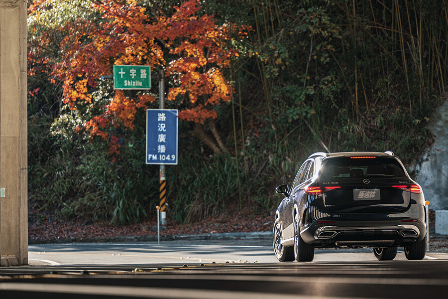 直上山路後,GLC說實在有兩種個性呈現給我們。先說說一般車速狀態好了,不刻意催股,順著正常車流與車速,GLC的山路動態有點風姿搖曳,會隨著路面鋪裝變化而有些小彈跳,但轉彎也是傳統賓士印象裡的舒適柔韌,有時會有些不預期的慣性側傾幅度出現,初期開始讓人有點難捉摸。不過當把車速拉快,這次GLC到是讓我發現到它的有備而來,車頭指向性相當準確,很有指哪打哪的直接感,而且車速拉快後,四輪懸吊彷彿長出另一套避震器,總能穩穩地承接與釋放因為連續彎路的左右擺動,配上略偏後軸的預設輸出比例,頭尾一拉一推的相互跟進扶持更是讓我和球褲笑顏逐開,加速出彎還有點AMG車款的氣勢,但也讓我一整個覺得早先順開時那種搖頭晃腦到底是怎麼回事,論操控能力的話,GLC也把自己重新擠進同級前幾名了。