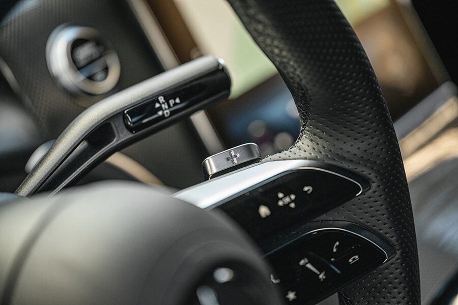 不過我對於這套9速變速箱的反應有點意見,而最主要的其實是在運動模式下的退檔邏輯。我在C300時有發現賓士一套重視出彎加速的退檔邏輯,在C300表現得恰到好處,不過在GLC上就有點考慮過多的感覺,減速進彎常常在彎中準備開油前突然多來了一下不預期的退檔,讓車輛因為多了一股引擎煞車而出現頓挫,切進手排模式可消除這種問題,但從撥片直接操作下車輛預設很快又會跳回自排,只好再點進螢幕打開純手排狀態,而且也無法從個性化模式裡做設定,一來一回的取捨,確實有點讓人覺得不乾脆。