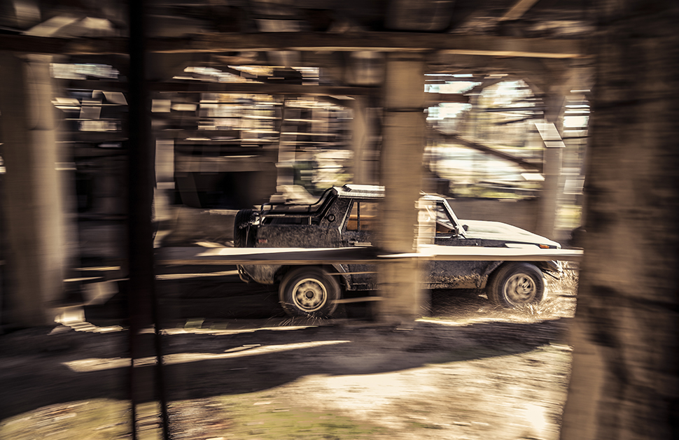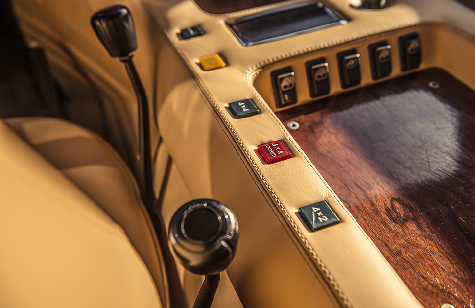 鏗鏘一聲關上沉重車門,腳步名副其實拖泥帶水的我再次回到皮香撲鼻的豪華空間。考慮到地板面積不小,這個車廂的擁擠佈局未免有點滑稽,四張座椅各據一隅,正中間是一條非常寬的傳動槽,儼如田埂分隔左右兩邊乘客。後座比前座略高,情況類似看台坐位。駕駛者必須自己想辦法遷就那個不能調校位置的方向盤,熟悉使用那些色彩繽紛、尺寸之大就連穿上太空衣也可以如常操縱的按鈕開關,以及兩根位於膝部和臀部旁邊的四驅輔助控制桿。要用四輪驅動,就得先從後座下邊取出巨型磅尺以人手鎖上左右前輪。我貪方便,所以只用兩驅。