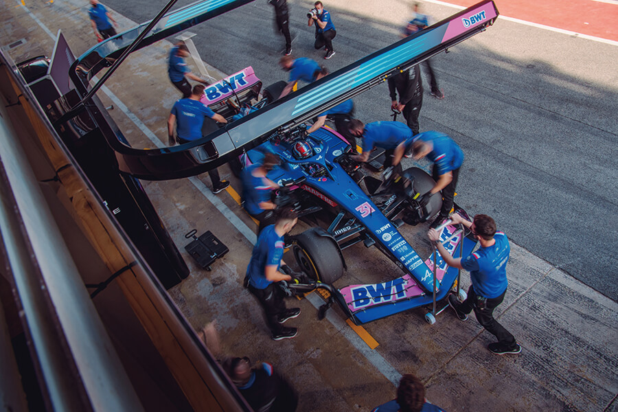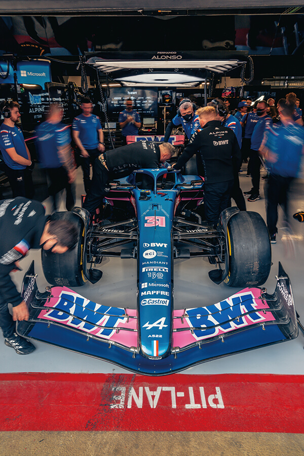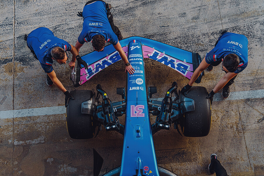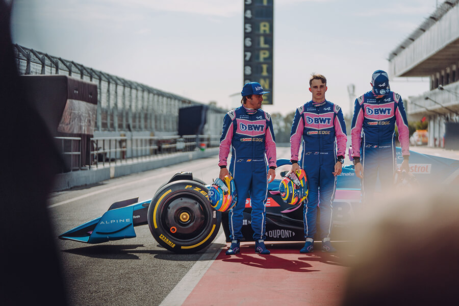 Alpine在2022 F1季前正式試車前一天第一次讓他們的新賽車出鞘,並給予TG幾乎可進出任何管制區域的權限。