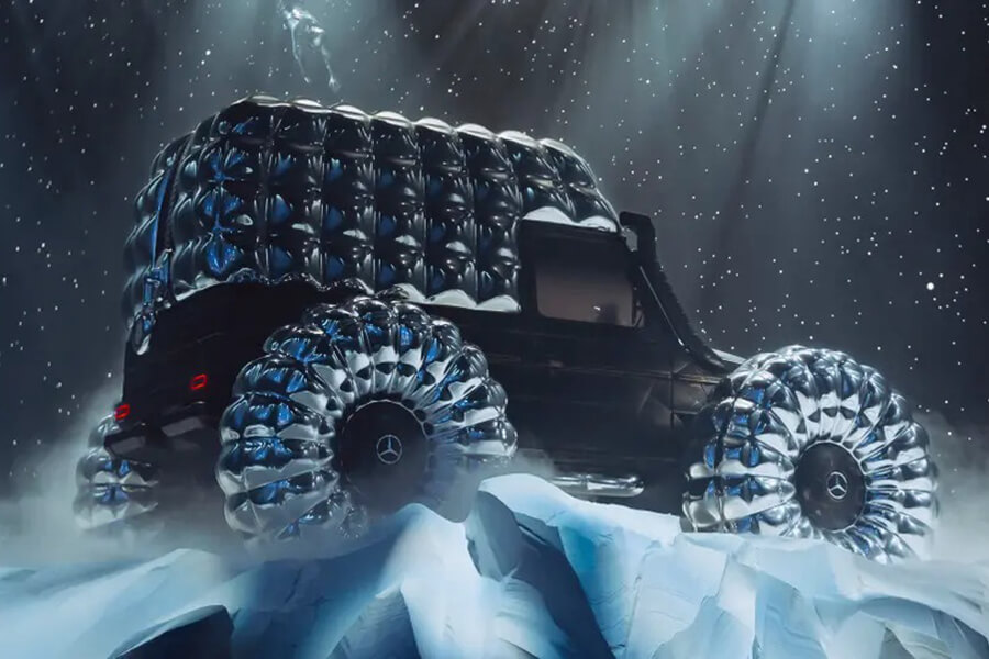 請掌聲歡迎Project Mondo G,一部於倫敦時裝周上亮相的”藝術品”,其人設…不,”車設”處於一個想像中的低重力宇宙當中,並以羽絨衣般一塊塊的鼓起取代輪胎的設計,傳達了為這部越野車保持舒適品質的概念。