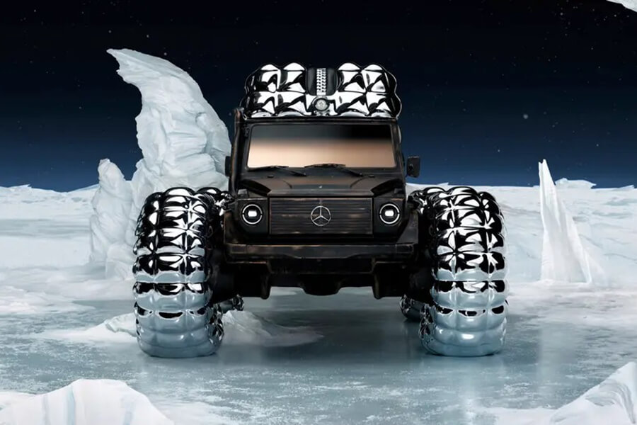 同時車身上頭亦在與Moncler的合作下加上了羽絨服身軀,將G Car剛正經久的外型與圓弧蓬鬆的羽絨材質相對比。最終他們還公布此物重2.5噸、寬3.4米,差不多有2.5部Range Rover那樣寬。