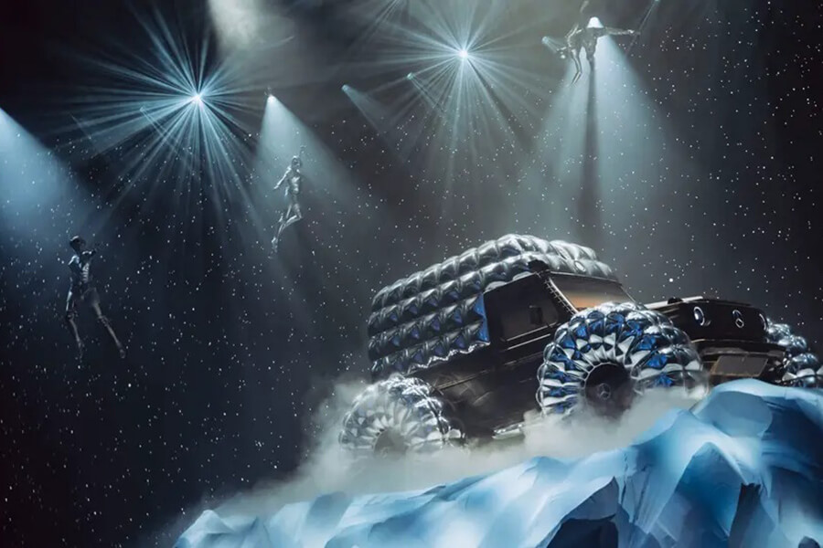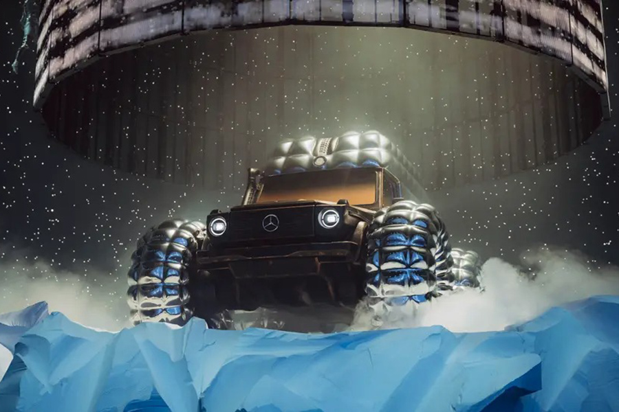 這件喚作Project Mondo G 的藝術裝置昨日在英國倫敦時裝週期間舉行的Moncler “天才的藝術”(The Art of Genius)秀上亮相,意在向Mercedes和Moncler兩品牌致敬。