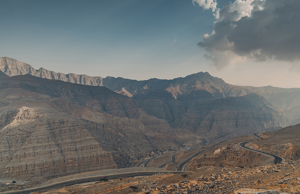 屹立於阿聯酋和阿曼之間的邊境,海拔1,934公尺的哈伊斯可不是地質奇觀那麼簡單。話說每一個國家都有一條最具代表性的道路,譬如羅馬尼亞有Transfagarașan,義大利有Stelvio(順理成章),英國則有繁忙時段的M25/M4公路交匯處,眼前這條路則是阿聯酋的代表作。哈伊斯山道既是嘆為觀止的建設,也是不可理喻的門面工程,全程17英哩都是玻璃般平坦的三線公路,沿著數百萬年前形成的峽谷或急(高速彎道)或緩(髪夾彎)通往山巔,還未翻到另一邊山便戛然而止,再無去路。