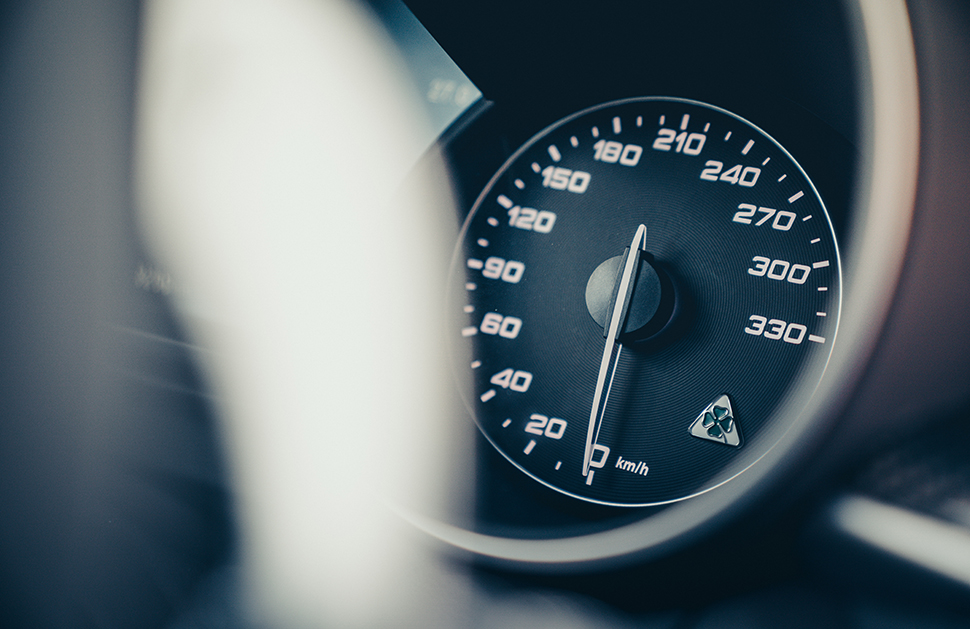 速度也相當可觀。雖然沒有任何形式的彈射起跑功能傍身,車手只要一蹬油門,變招天衣無縫的變速箱和了無惰性的強勁V6便會支撐大局。迄今為止,唯有兩點動搖我的信心。首先是煞車,這輛Stelvio使用鋼碟而非額外選購的碳陶瓷貨色,煞車碟在貌似電話撥號盤的20吋精美輪圈映照下未免太寒酸。另一點是油光亮滑的路面突然冒出警方檢查站。