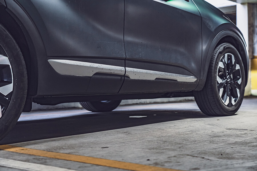 自此再退一步,來到車外其實就對外型設計有所改觀,KIA能為空間如此寬裕之車賦予如此動感的外觀確實厲害:除了稍早提到的誇張前臉需要您以不同的視野對焦方式看待,才能猛然參透這張超大虎鼻臉之外,車側的表面起伏與車窗線條亦使這部長軸Sportage未顯臃腫姿態。這部乍看的車竟然屬於耐看派,令人詫異。此時在看看此車盛惠135.9萬之開價…,想想此車既於外搶眼前衛、於內又顧得一車乘客包君滿意,儘管所開價格亦不俗,不過滿車配備襯上均衡的使用體驗卻算是對得起這張價格標籤啦。