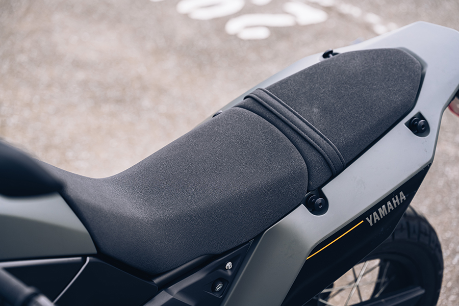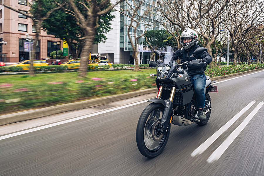 哦,果真如此?小編接過鑰匙跨上車,第一印象就是「好輕!」雖然以筆者175cm的身高對上875mm的座高依舊需要左右挪移身體以保持單腳著地,不過轉換過程中確實可以感受到YAMAHA把這連油帶水的205公斤分配得妥妥當當,左搖右晃的輕盈感覺好似筆者正騎著自己的YZF-R3、只不過懸吊行程及座高雙雙暴增約100mm。除了重量安排,Ténéré 700輕巧的駕馭感還要歸功於其車身與坐墊設計。由於近年來市場對Adventure Bike的用途亦加趨向作為一部公路旅行車款,現有車款亦逐漸增加油箱容量、修正坐墊設計好應付長程旅途的續航力與舒適度。不過Ténéré可不玩這一套,雖然坐墊實質上依然為前後分離設計,不過窄長、平坦且造型一氣呵成的設計看起來其實更加接近越野車,使騎士在車上前後左右的移動更加不受限,對於一般日常騎乘的好處亦包含在油箱與車身寬度縮減下,相同身材條件的騎士雙腳可以更容易接觸到地面。在試乘過程中筆者亦意外發現在狹窄路段進行上坡迴轉時,下坡側的腳竟然還搆得到地面,是小編過去騎乘類似車款時因為車身寬度、高度的特性所不敢想像的。