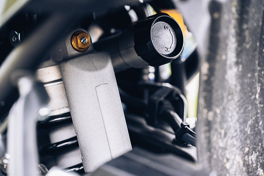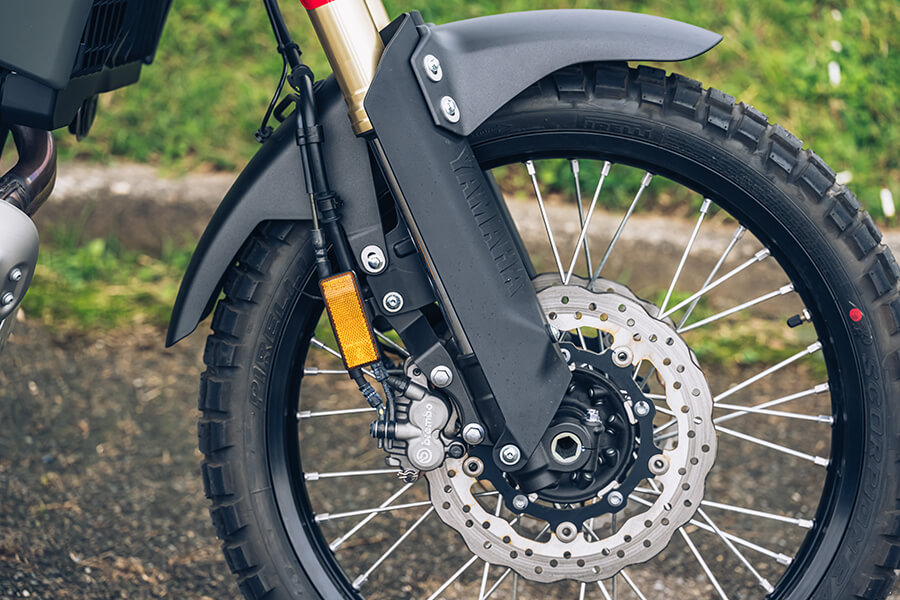 說到轉油門,就不得不提此車的油門反應與其他搭載CP2引擎的車款有些不同:甫開啟油門時的充沛扭力依舊、不過少了那種將人車粗魯帶離原地的拉扯感;同時轉速與出力的攀升亦更加順暢。此間玄機在於雖同採CP2雙缸引擎,但透過不同的引擎設定,使Ténéré的最大馬力比起街車親戚MT-07要整整多出1匹馬力、峰值轉速亦延後250轉,搭配一二檔較輕的變速齒比及好大一張(45T)的後齒盤,才調整出這個綿密好騎、兼顧低扭及動力延伸性的騎乘特性,同時較綿密的開油反應對於軟地的脫困其實更有幫助。當車輛陷在爛泥或沙地時你還在大力鼓催油門?或許你該改試試這種方法。