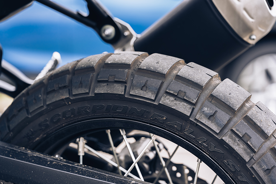 隨著各式植被取代周遭的水泥叢林,亦漸漸能體會到此車on-road操控的能耐。長行程的前後懸吊將地面的紋理起伏與騎士分隔兩端,我卻能輕易感知樓下兩顆胎圈究竟發生了那些動靜;注意看前輪軸心亦位處前叉的靠前端,如此設計能提升轉向時的靈敏度,同時又能抵銷大輪徑所帶來的笨重感,加上鋼絲框外緣所包覆的是倍耐力出品的Scorpion Rally STR兩用胎,身為多款ADV車型的出廠配胎,安裝在T7身上亦能在刁鑽的山路間發揮作用,在纖細車身快速地傾倒後便出現明顯導向性,維持車輛的彎中動態並提供放心開油的安全感。