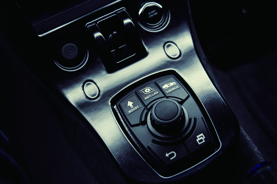直搗這個極限會非常有趣。你在座椅之間不會找到手排檔桿;請記得他們可是賽車隊啊。君可知越少用古色古香的類比裝置,動作可以越快嗎?所以你會找到一塊控制板,板上有幾個開關分別標明Boost、Anti-Lag和Launch。這些按鈕其實是接通中央螢幕功能選單的捷徑,以便車手隨時調整引擎曲線和油門霹哩啪啦的凶暴程度(信不信由你,這個中央螢幕原來設有Apple CarPlay功能)。