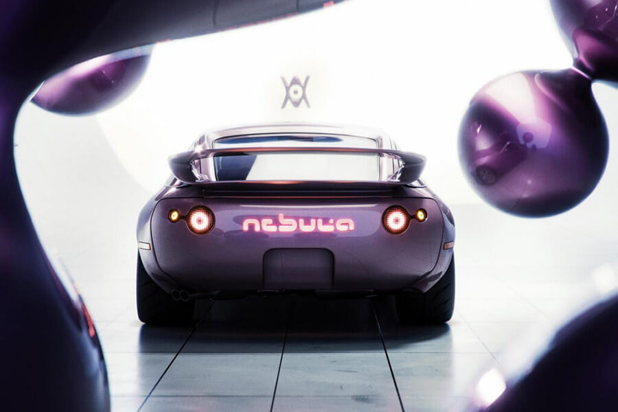 在Daniel Arsham提出“time-traveling concepts”時空旅行概念的設計基礎下,Khyzyl Saleem遵循此法建構了此車的內外樣貌。包含位在車輛頭尾、好似兩枚突破表面張力而交融之液體泡泡的LED燈具,圓滑的風格亦波及前分流器上方的進氣口造型。至於車尾有著以花俏字體顯示的”Nebula”(星雲)發光字樣,上方的大型尾翼則讓人很難不與996 GT3的車尾產生連結。